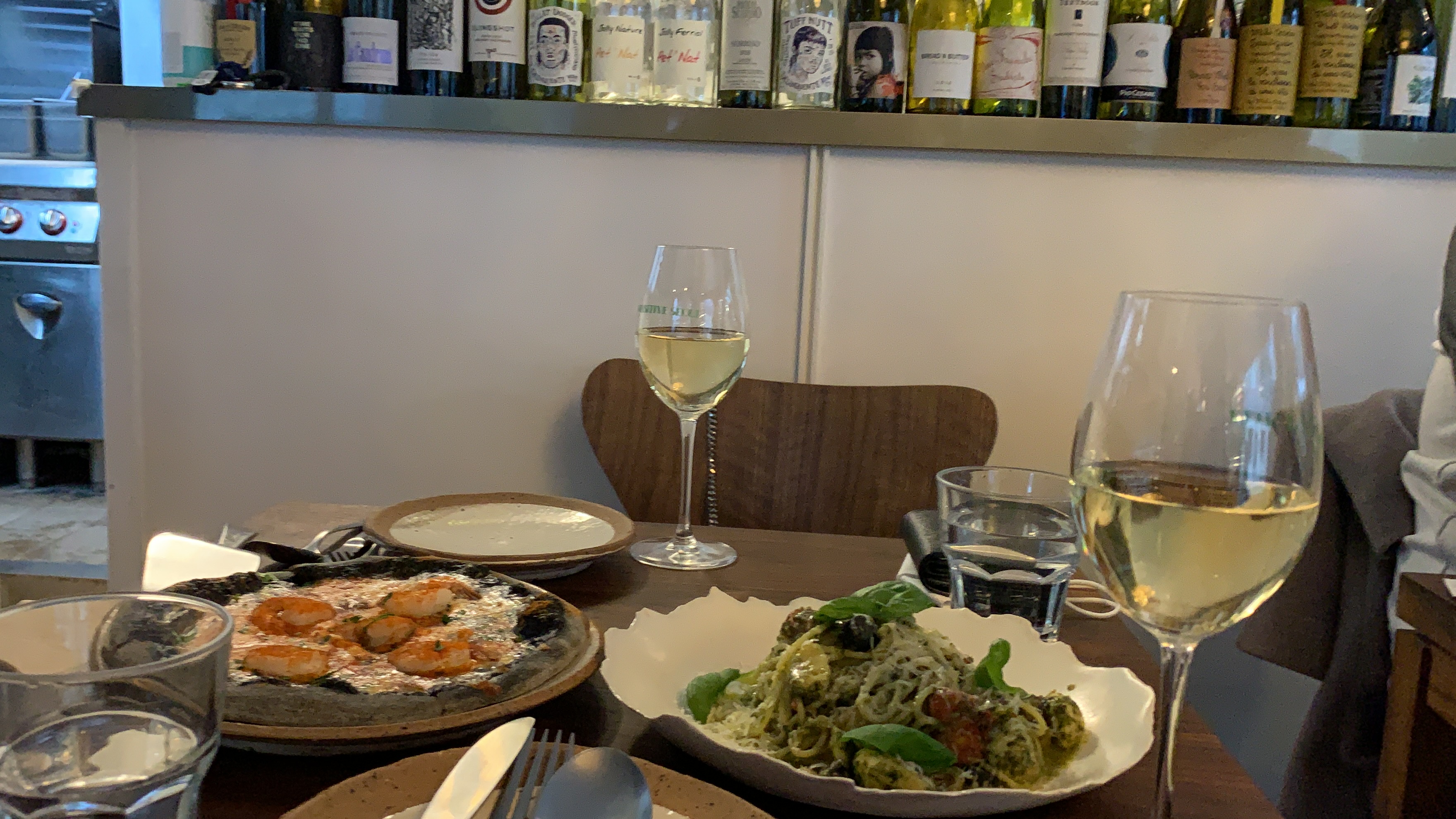저는 바질 페스토 (21,000원)과 블랙 쉬림프 (17,000원)과 화이트 와인 두 잔을 추가로 주문했습니다.
