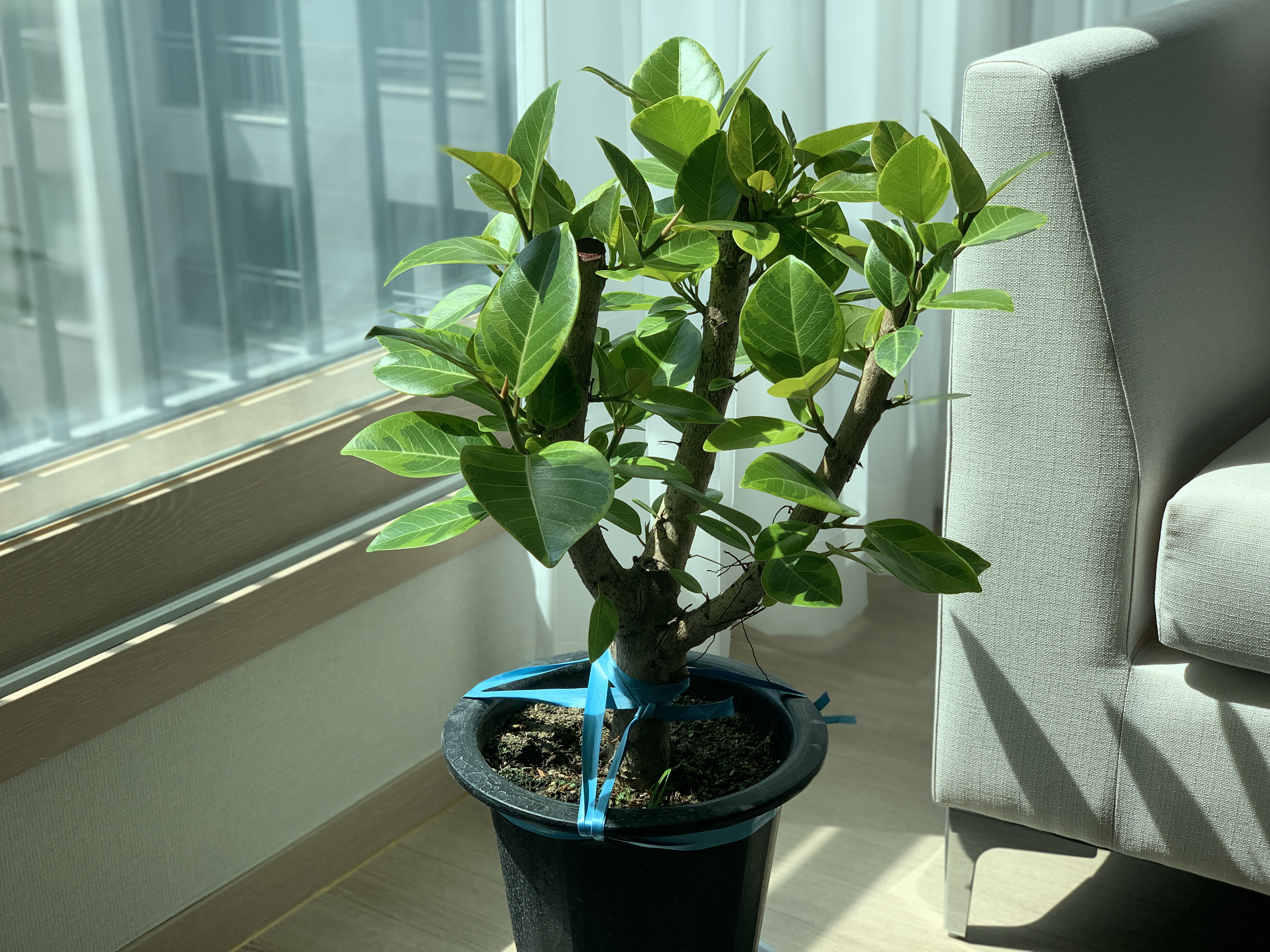 매장 한편에는 조금 큰 뱅갈 고무나무가 있었는데 그 아이들은 진한 녹색 잎이었습니다.