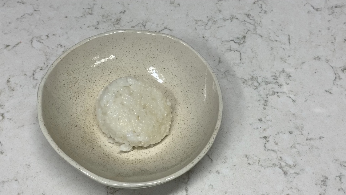 오목한 그릇에 밥을 담아주고 위에 드라이 카레를 뿌려줍니다.