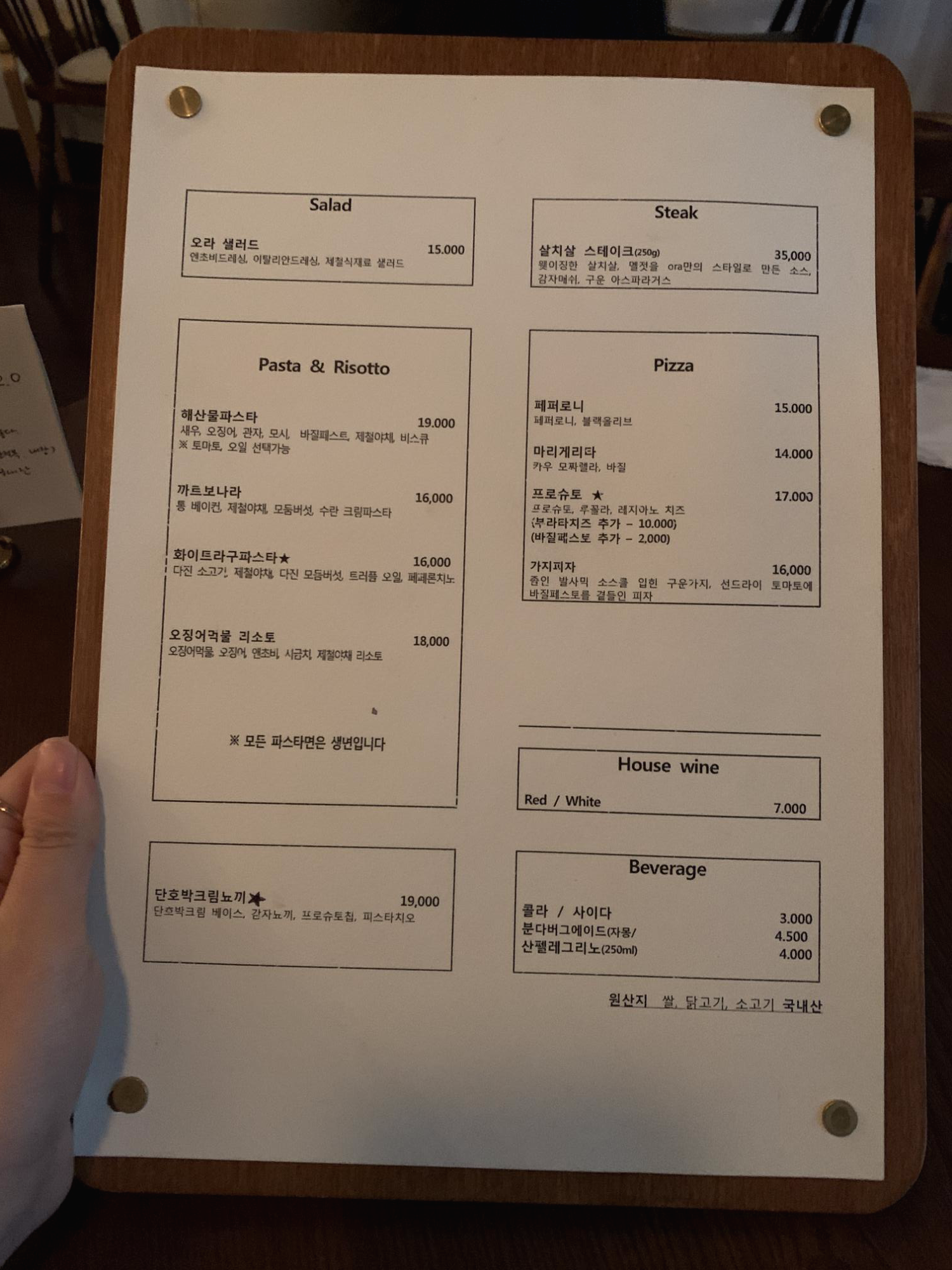 '오스테리아 오라' 메뉴판도 찍어봤어요