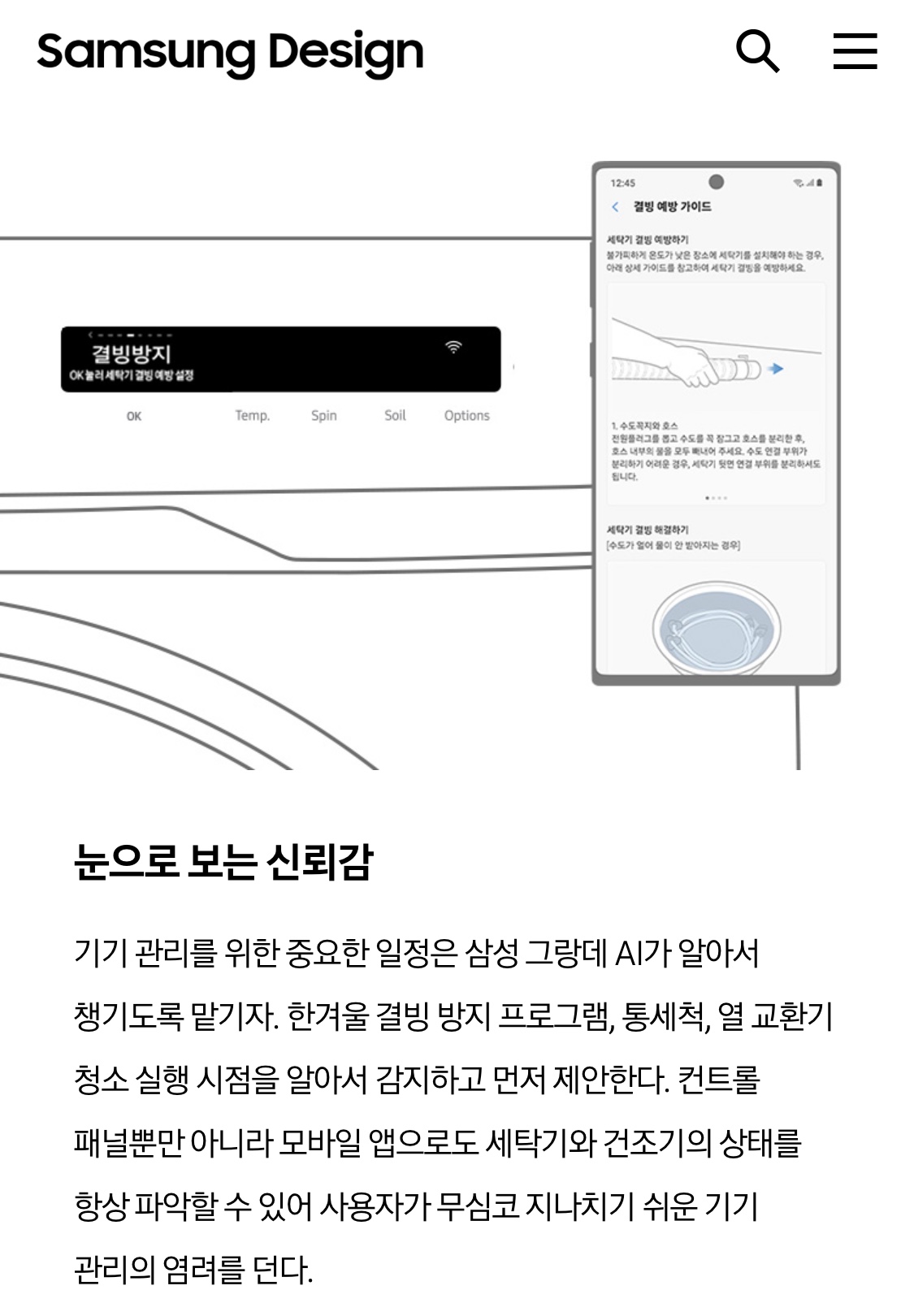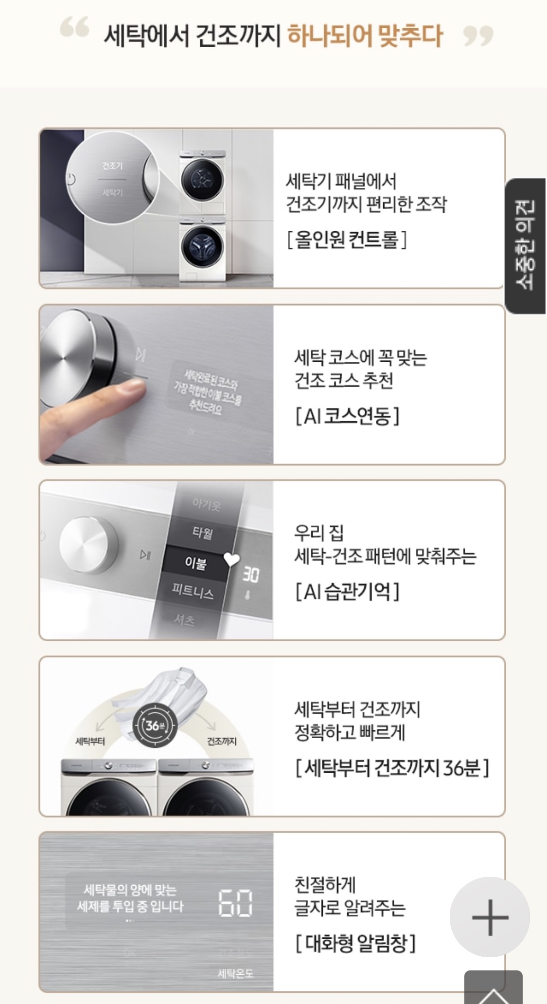조작도 편리하고 세탁 후 건조 코스 까지 추천해 주는 똑똑한 가전이네요.