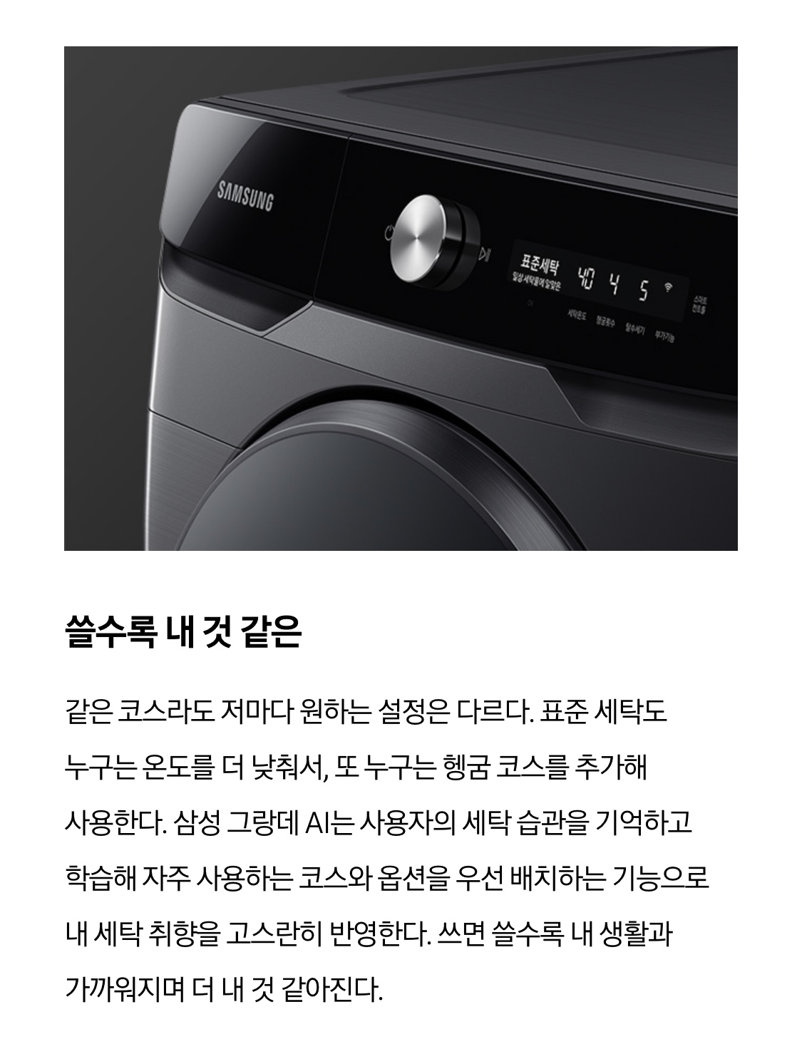 삼성그랑데 AI는 세탁 17분 건조 19분 으로