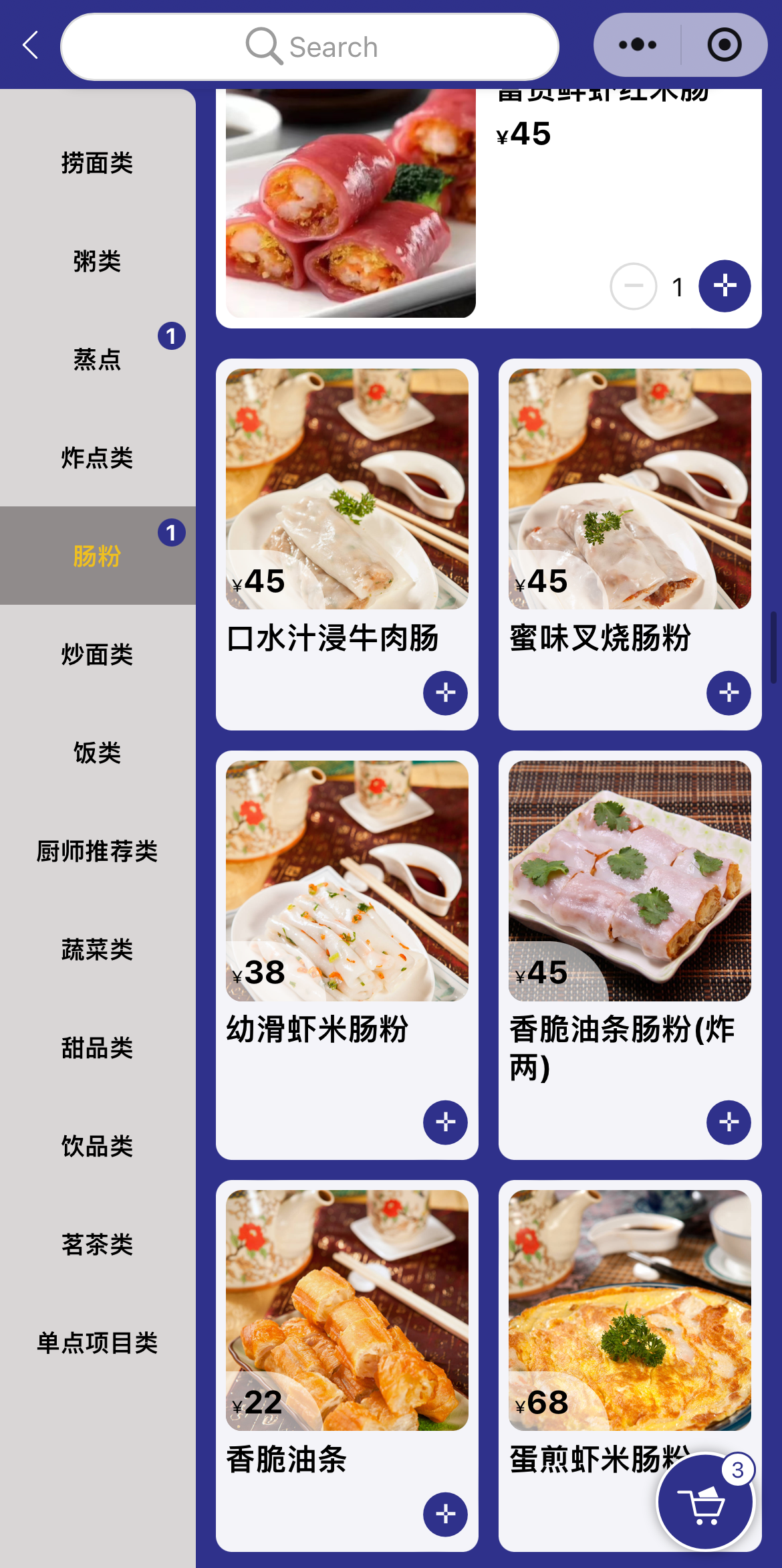 幼滑虾米肠粉 38위안