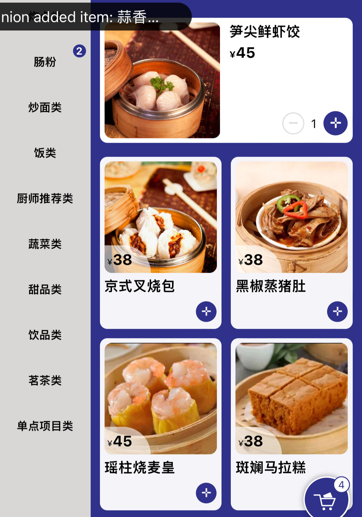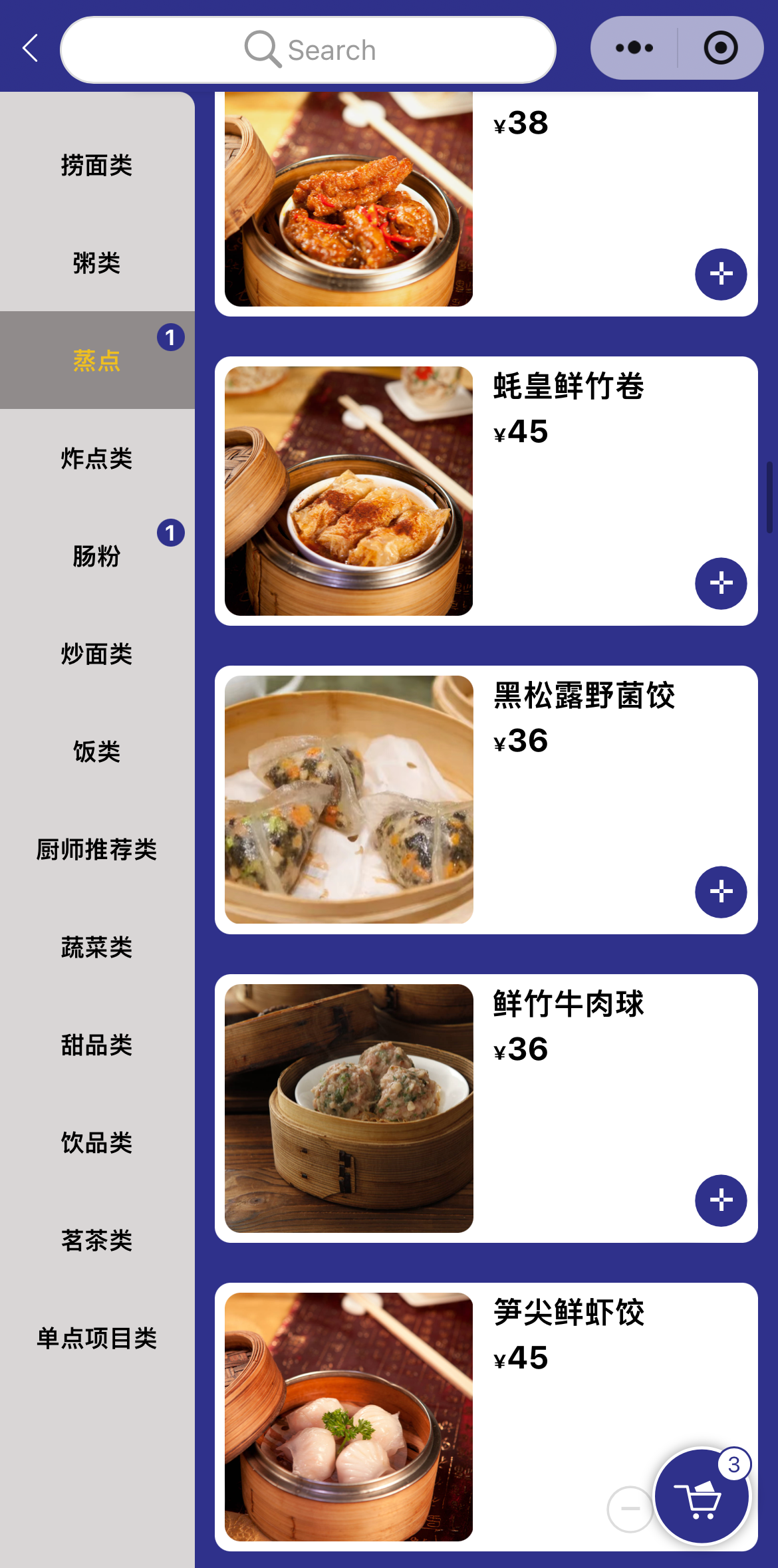 笋尖鲜虾饺 45위안