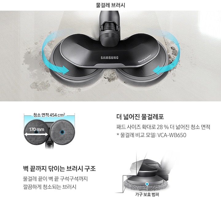 [먼지 제거와 물걸레 청소가 가능한 전용 브러쉬]