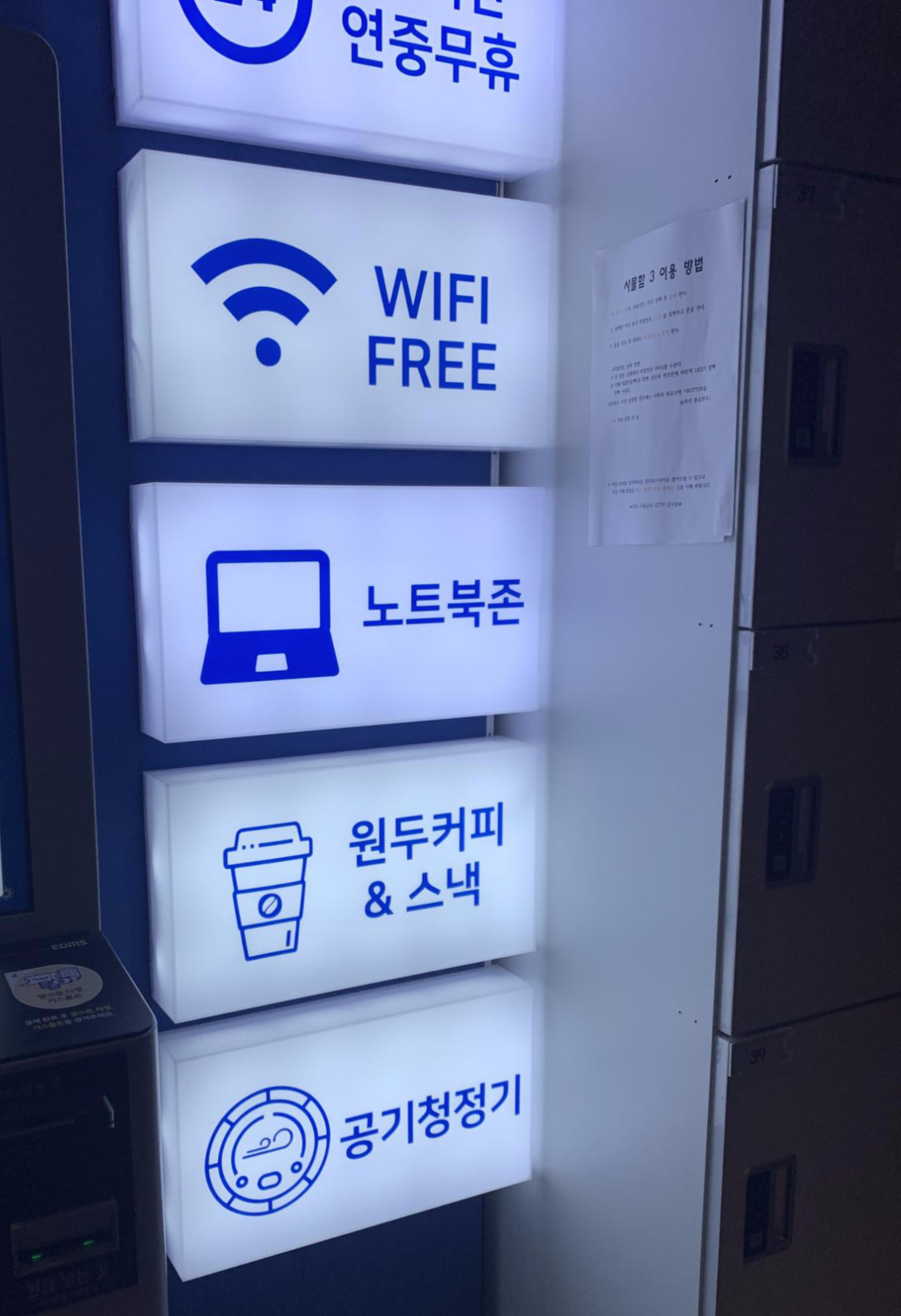키오스크 옆에 와이파무료 / 노트북존 / 원두커피&스낵 / 공기청정기