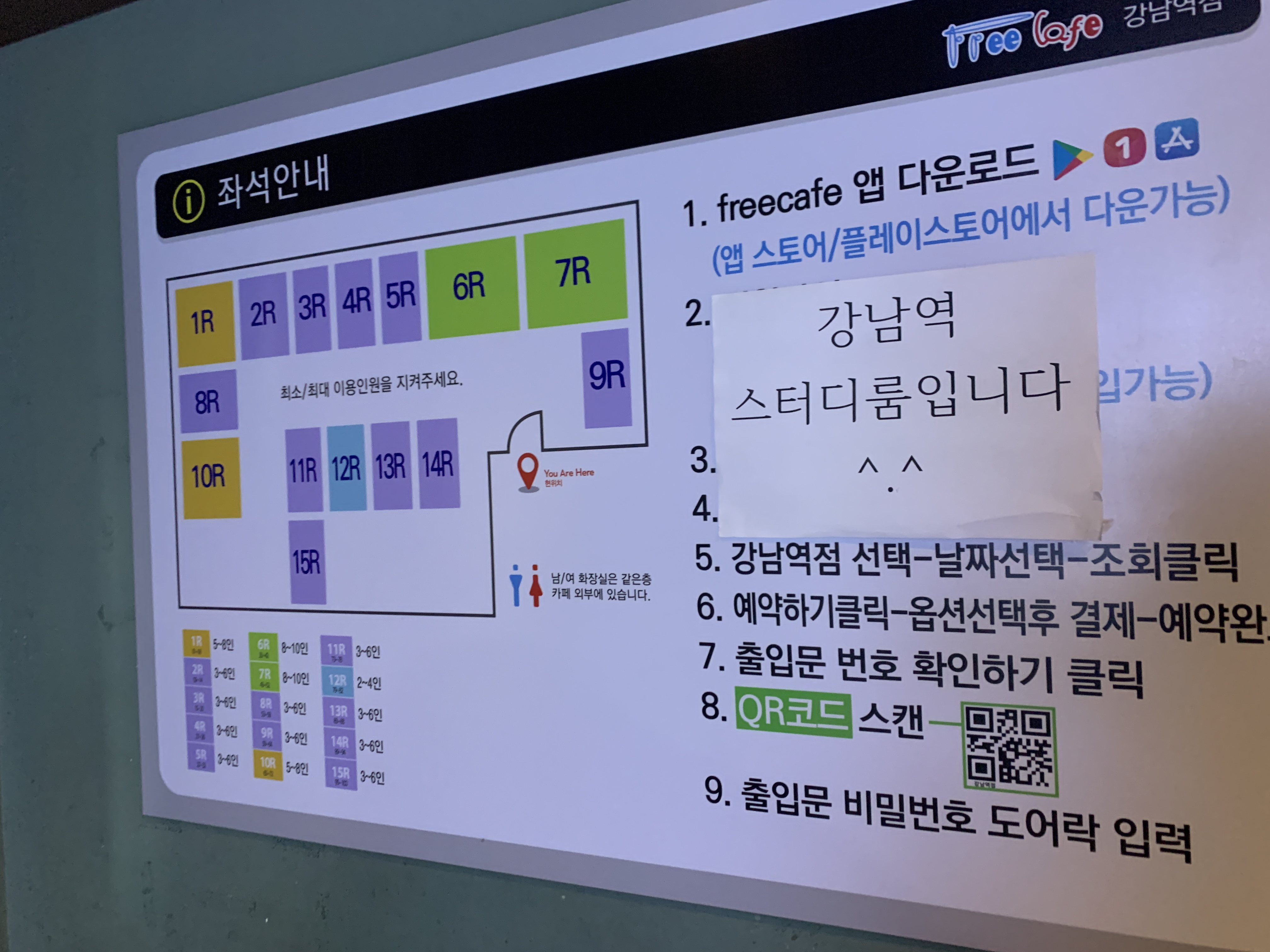 그리고 스터디룸은 룸마다 크기가 달라서인지 최소인원수와 최대 인원수의 차이가 있었어요.