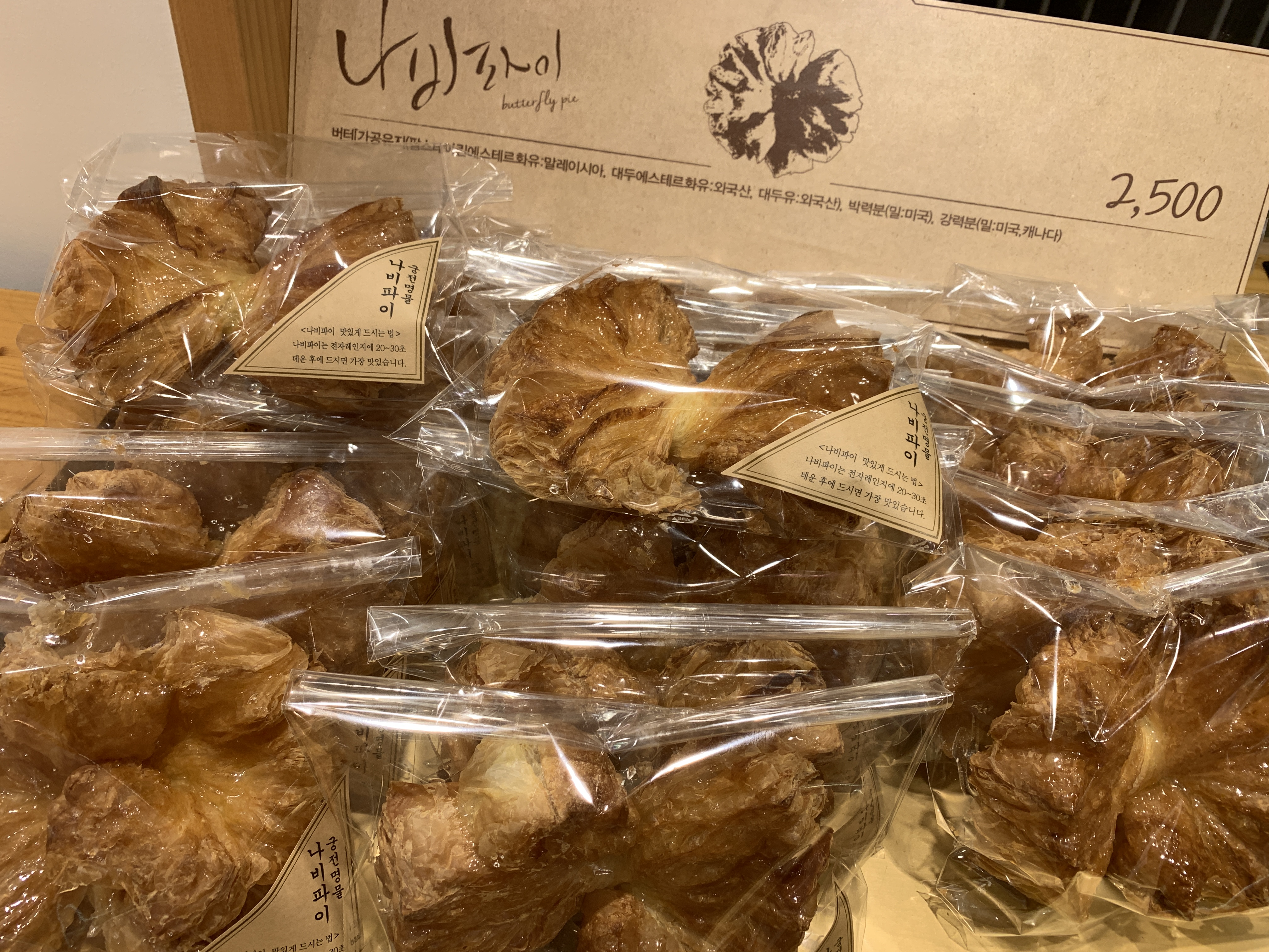 첫 번째로 소개해 드릴 빵은 궁전제과의 명물 ‘나비 파이’입니다. (가격 2500원)